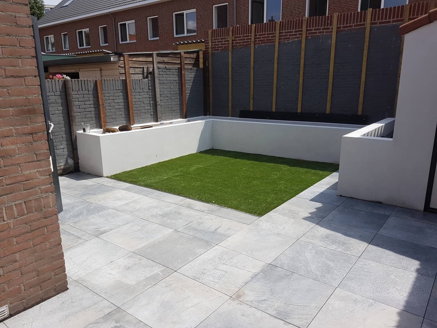 Complete tuinaanleg in Heemskerk – Nieuwe tuin met plantenbakken, bestrating en graszoden